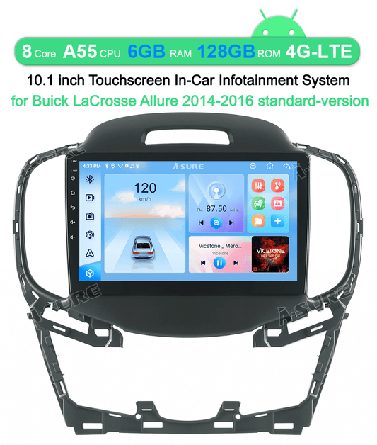 10.1" Android 13 Car Stereo Radio 6+128GB for Buick LaCrosse Allure 2014-2016 Wireless CarPlay GPS Navi 4G LTE WiFi Bluetooth DSP SWC USB