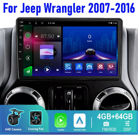 10'' For Jeep Wrangler 2007-2016 Car Radio Head Unit Wireless Carplay Apple Android 13 Auto Intelligent System GPS Navi 4-64GB