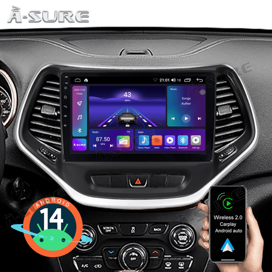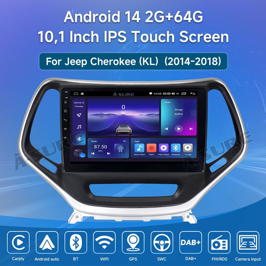 10.1" Android 14 2+64GB Car Stereo Radio for Jeep Cherokee 2014-2018 Wireless CarPlay GPS WiFi Bluetooth DSP RDS SWC USB
