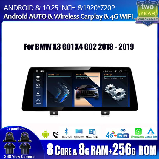 10.25 Inch For BMW X3 G01 X4 G02 2018 - 2019 Android 14 Touch Screen Car Carplay Monitors Stereo Speacker Multimedia Player
