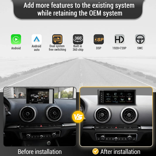 10.25 inch Touch Screen for Audi Q5 Multimedia (2009-2017) Apple CarPlay Android Auto Upgrade Fatory Car Radio Retain Original Stereo System