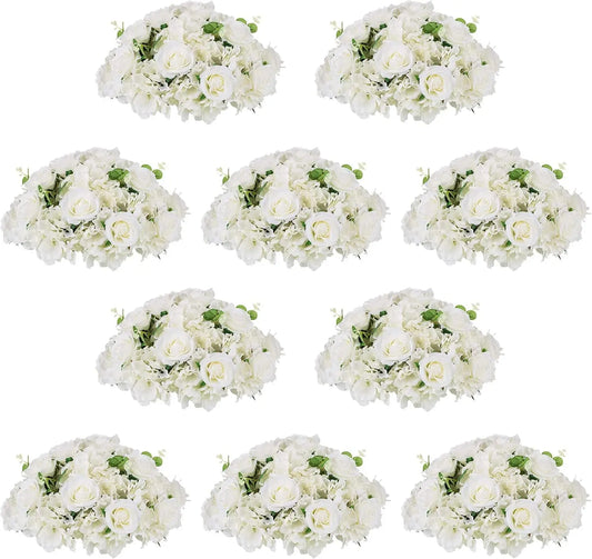Flower Ball Arrangement Bouquet - 10 Pcs 15.7 inch Diameter White Fake Flowers Roses Balls for Centerpieces Tables Rose