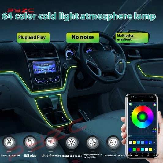 For BenZ C-Class 64 Color RGB Symphony Car Ambient Light Strip APP Enable Interior Acrylic Guide LED Atmosphere Lamp