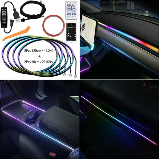 For Tesla Model 3 Y 120cm/47.24inch Car USB Ambient Lights LED Interior Sound Control RGB Symphony Atmosphere Lamp APP Remote