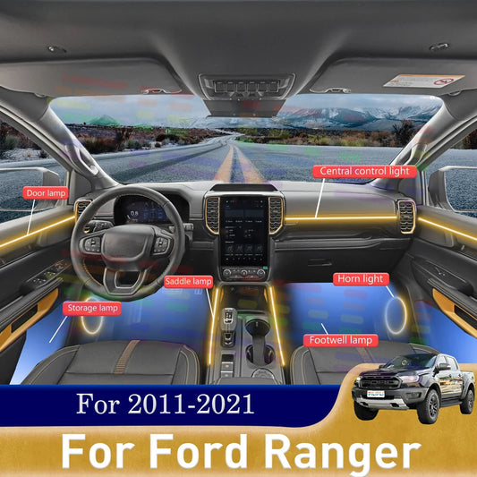 For Ford Ranger Smart Remote Control Car Interior Ambient Light RGB 64 Colors LED Secure-Connect Installation Set For 2011-2021