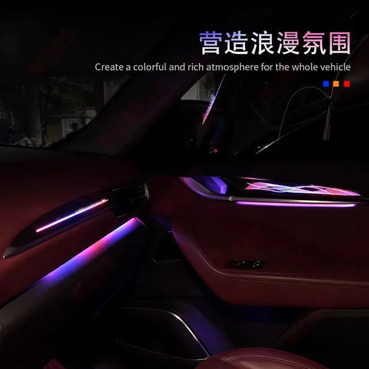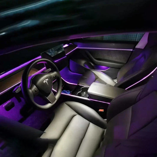 19 in 1 RGB 64 Color Ambient Light For Tesla Model 3 2019-2020 Car Interior Acrylic Guide Fiber Strip Decoration Atmosphere Lamp