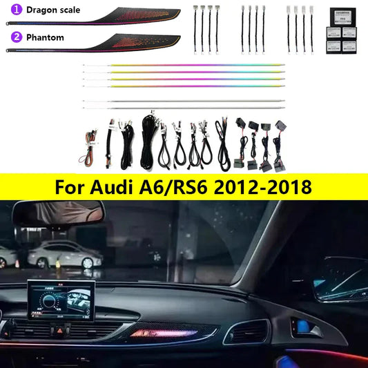 20 in 1 Ambient Lighting Car Kit For Audi A6 RS6 2012-2018 Hidden Built-in Light Strip Dashboard Door Decoration Atmosphere Lamp