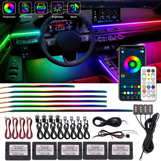 18 / 22 In 1 Streamer Car Ambient Lights RGB 213 64 Color LED Interior Rainbow Acrylic Strip Symphony Remote Atmosphere Lamp Kit