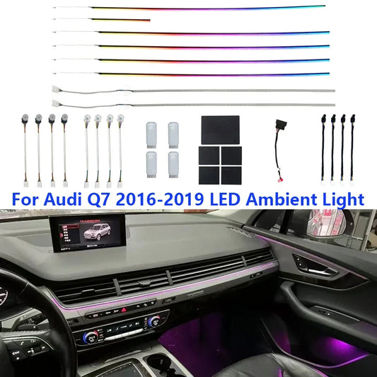 64 Colors LED Ambient Light 24 in 1 For Audi Q7 2016-2019 Car Interior Led Strip Dashboard Door Panel Decoration Atmosphere Lamp