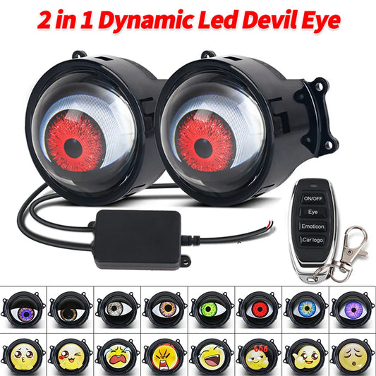 3 Inch Car Devil Eyes Lens Lights 12-36V Demon Red Eye Dynamic Headlight Assembly With Remote Control Auto Retrofit Accessorie