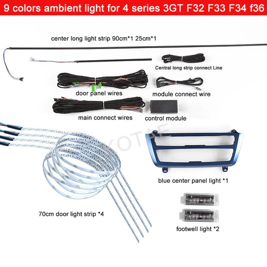 For BMW 3 4 Series F32 f33 F34 F36 Atmosphere Lights With 9 Colors 4 Inner Doors Central Control Decorative Ambient LED Lights