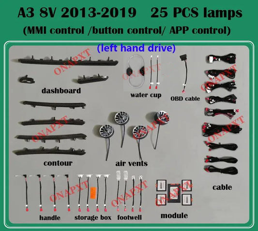 LHD RHD For Audi A3 RS3 S3 2013-2024 MMI APP Nozzle Air Vent Decorative LED Strip Lamp Door Dashboard Footwell Ambient Light