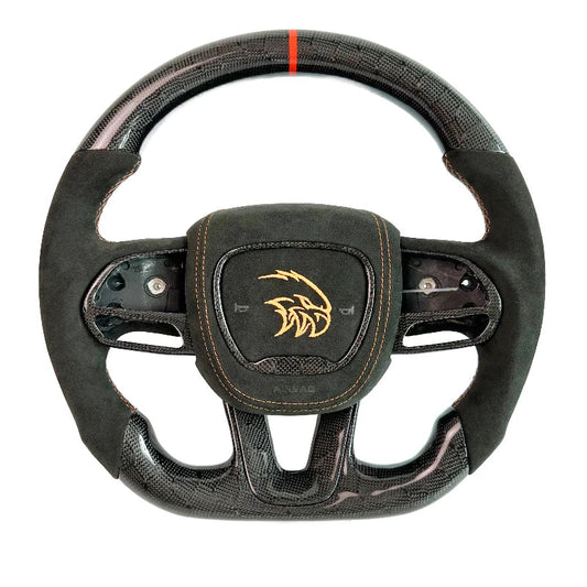 Real Carbon Fiber Steering Wheel Perforated Leather For Dodge Challenger Charger SRT HELLCAT 2015‑2022