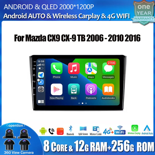 Android 14 WiFi For Mazda CX9 TB 2006 2007- 2010 2016 Car Radio Multimedia Player DSP Stereo GPS 4G Split Screen Bluetooth