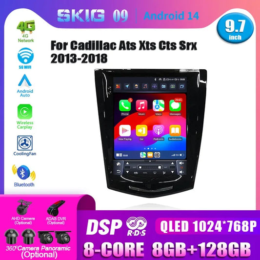 9.7inch Android 14 For Cadillac Ats Xts Cts Srx 2013-2018 Car Radio Multimedia Navigation 4G GPS Wireless Carplay Screen Stereo