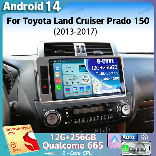 Android 14 For Toyota Land Cruiser Prado 150 2013 - 2017 2K QLED Android Car Radio Multimedia Video Player GPS Stereo CarPlay 4G