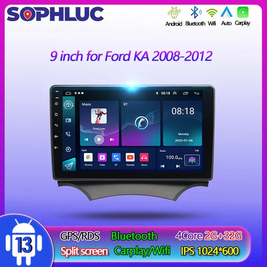 Sophluc 9 inch Android 13 Multimedia Vedio Player for Ford KA 2008-2012 Wireless Carplay GPS Navi BT FM DSP EQ Car Stereo Radio