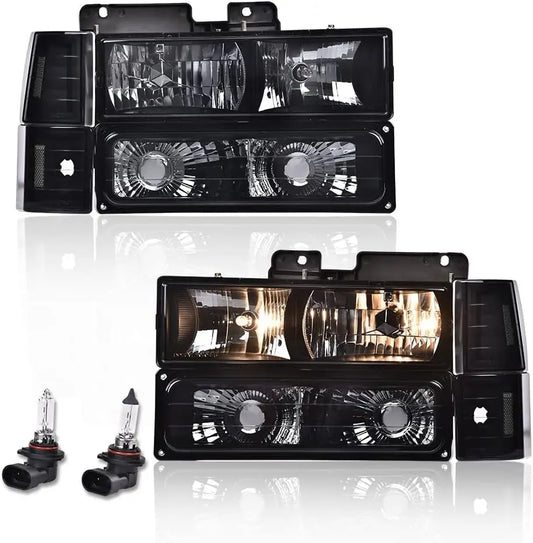 Headlights Assembly, Compatible with 1994 1995 1996 1997 1998 1999 GMC C1500 K1500 Yukon bumper Headlamp, Smoky lens Black Housi