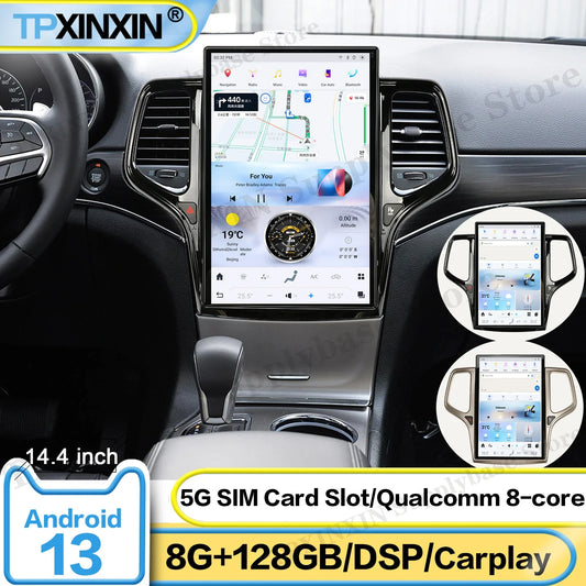 14.4 Inch Screen Qualcomm Android Auto Screen Player Head Unit For Jeep Grand Cherokee 2014~2024 GPS Navigation Radio Receiver