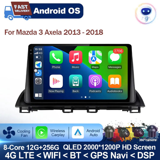 Car Radio Stereo Player for Mazda 3 Axela 2013 - 2018 Android Auto Wireless Carplay WiFi BT GPS Navigation QLED Screen Head Unit