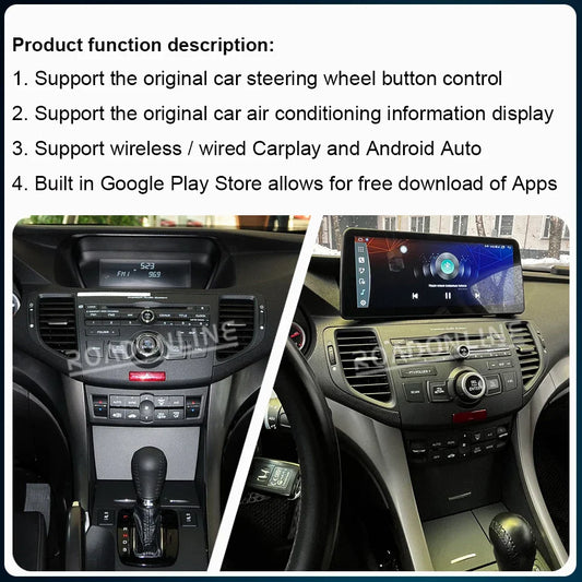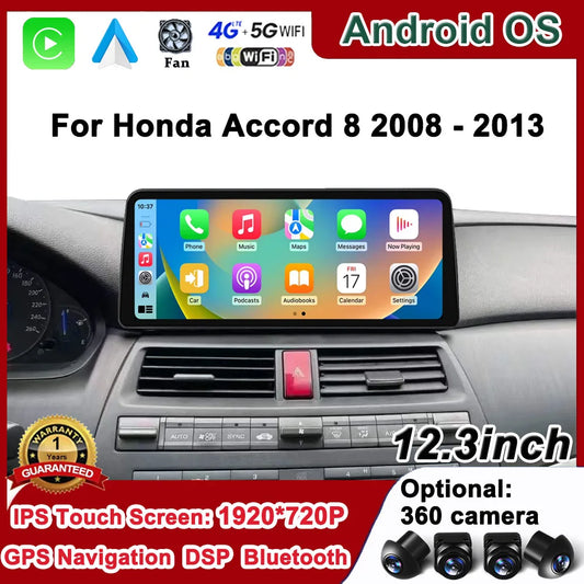 12.3 inch Android 14 for Honda Accord 8 2008 2009 - 2013 Car Multimedia Radio Player Wireless Carplay Monitor GPS Navigation BT