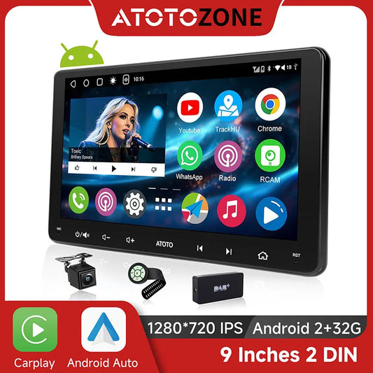 ATOTOZONE 7/9/10 Inch Android Car Stereo Double Din 1280x720IPS Touchscreen FM GPS WiFi Wireless CarPlay/Android Auto AHD Camera