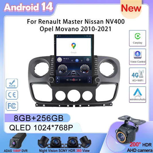 Car Android 14 For Renault Master Nissan NV400 Opel Movano 2010-2021 Navigation Touch Sereen Multimedia Player GPs 2din carplay