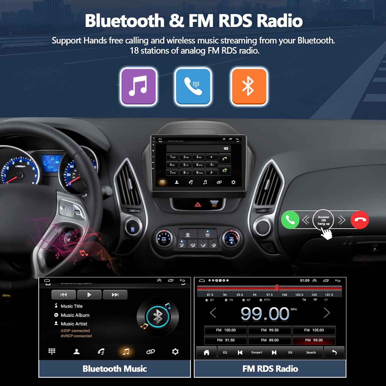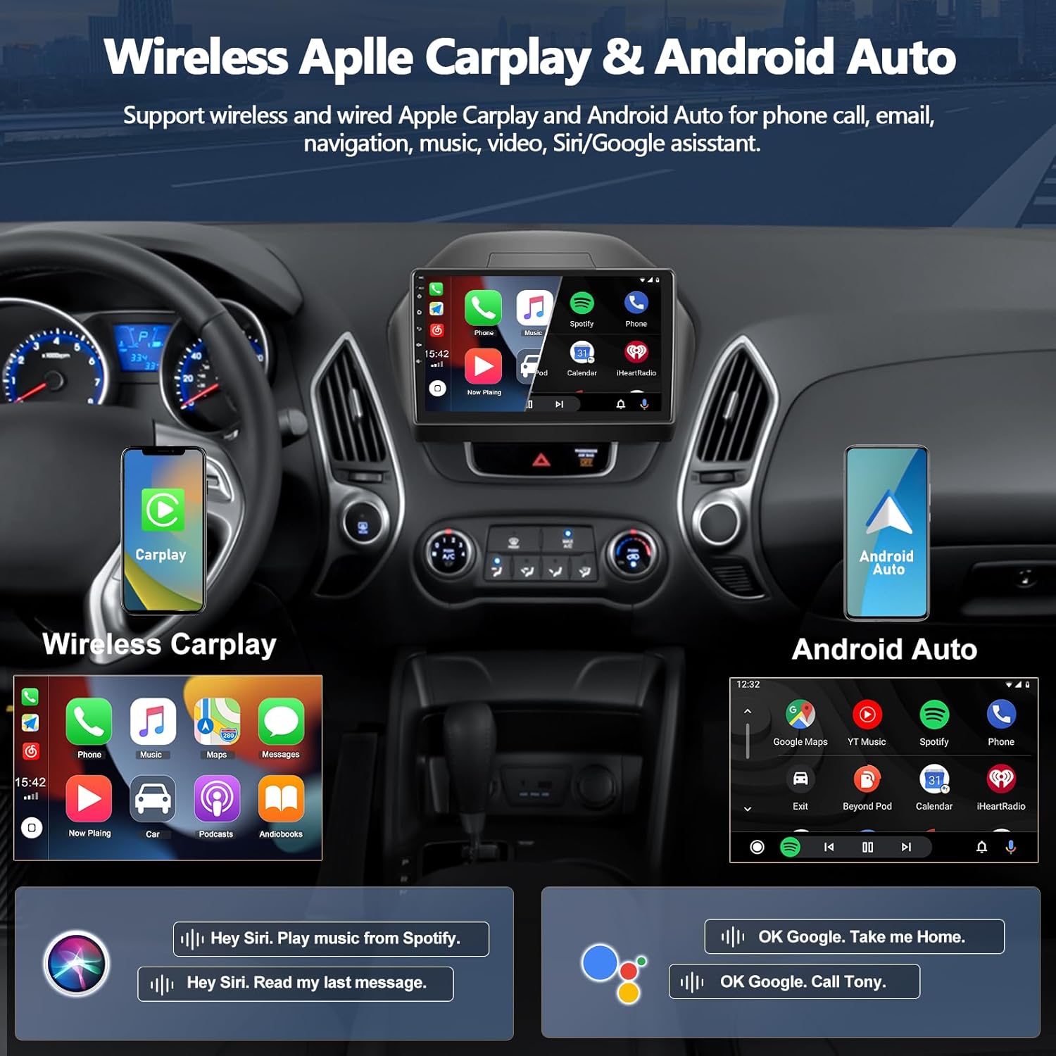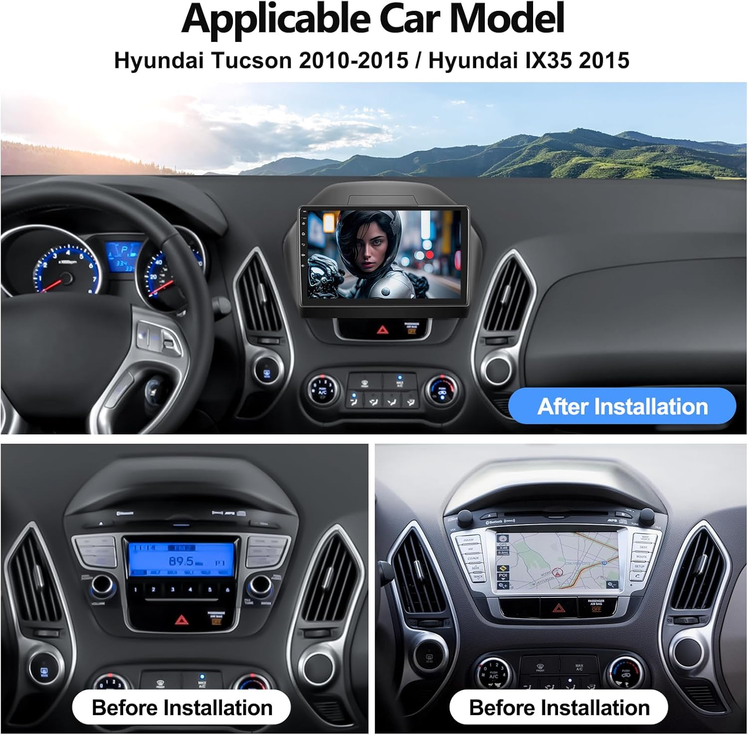4+64GB Android Car Stereo Radio for Hyundai Tucson 2010-2015 with Wireless Carplay Android Auto Touch Screen Bluetooth Car Radio with GPS Navigation HiFi WiFi FM RDS Radio + AHD Backup Camera