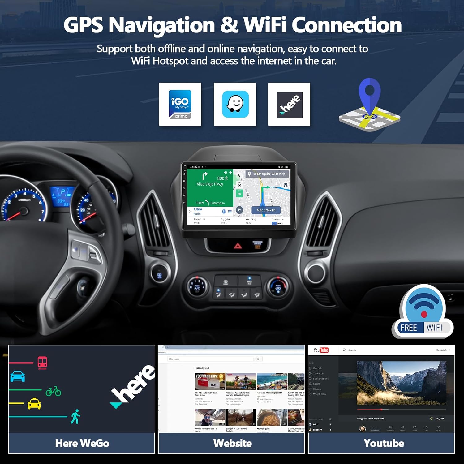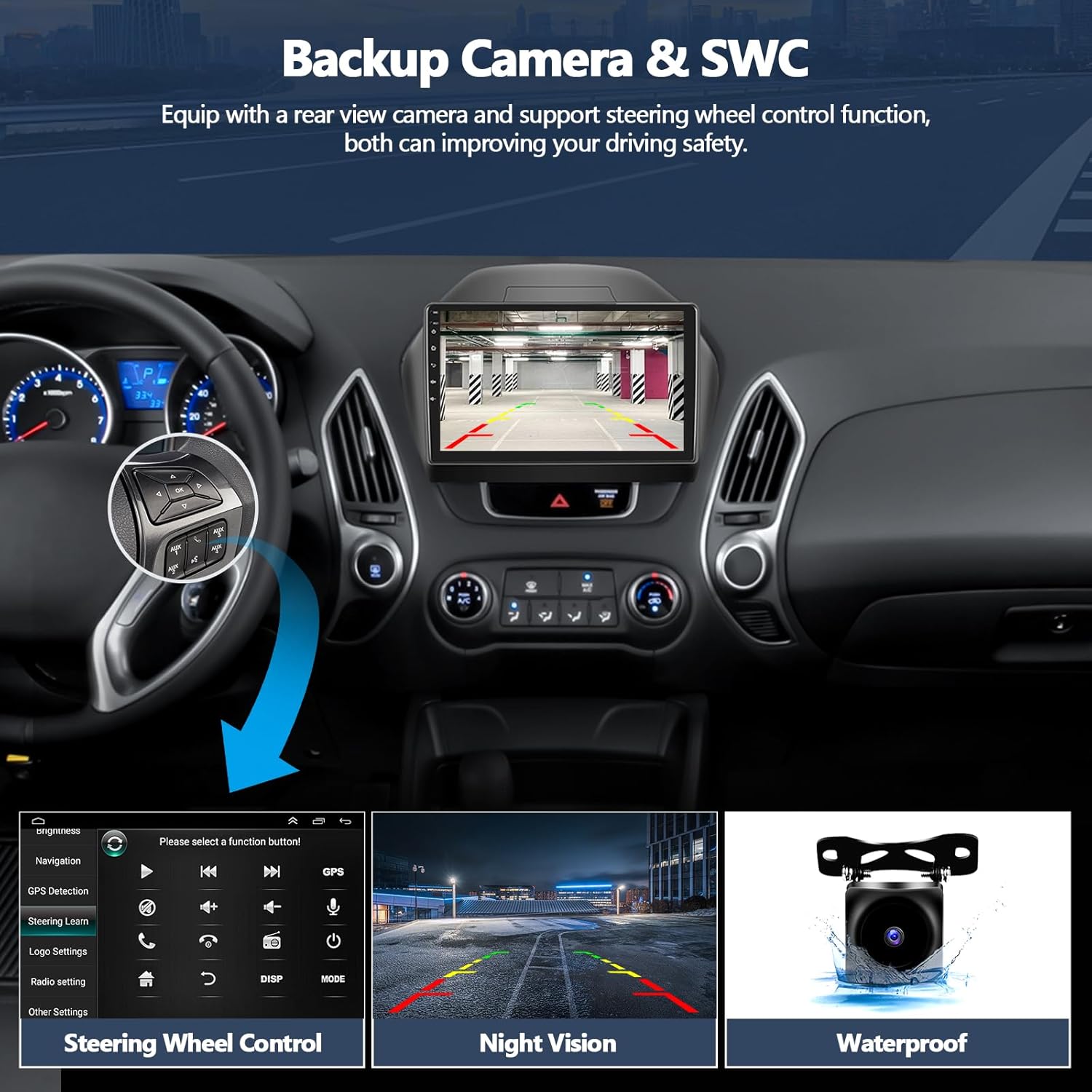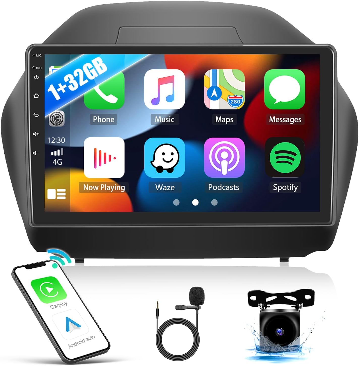 4+64GB Android Car Stereo Radio for Hyundai Tucson 2010-2015 with Wireless Carplay Android Auto Touch Screen Bluetooth Car Radio with GPS Navigation HiFi WiFi FM RDS Radio + AHD Backup Camera