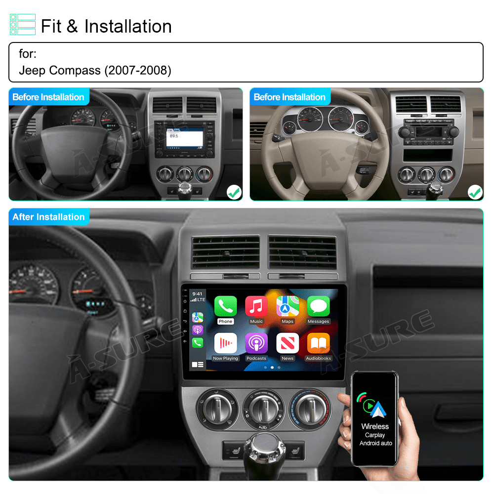 Here is a 150-word product description for the '10.1" Carplay Android 10 Car Stereo Head Unit DSP BT for Jeep Compass 2007 2008' by OmniPure: **Upgrade Your Ride with OmniPure's -Notch Car Stereo** Take your driving experience to new heights with our state-of-the-art car stereo head unit, designed specifically for the Jeep Compass 2007/2008 This cutting-edge device features Android 10 operating system, ensuring seamless navigation and entertainment on the go **Key Features:** • 10.1" High-Resolution Touchscreen Display • Supports Apple CarPlay and Android Auto for effortless connectivity • Built-in DSP (Digital Signal Processing) for superior sound quality • Bluetooth Technology for hands-free phone calls and wireless music streaming • Rearview Camera Input for enhanced safety Experience the future of in-car entertainment with OmniPure's car stereo head unit Order now and enjoy a more enjoyable, connected drive!