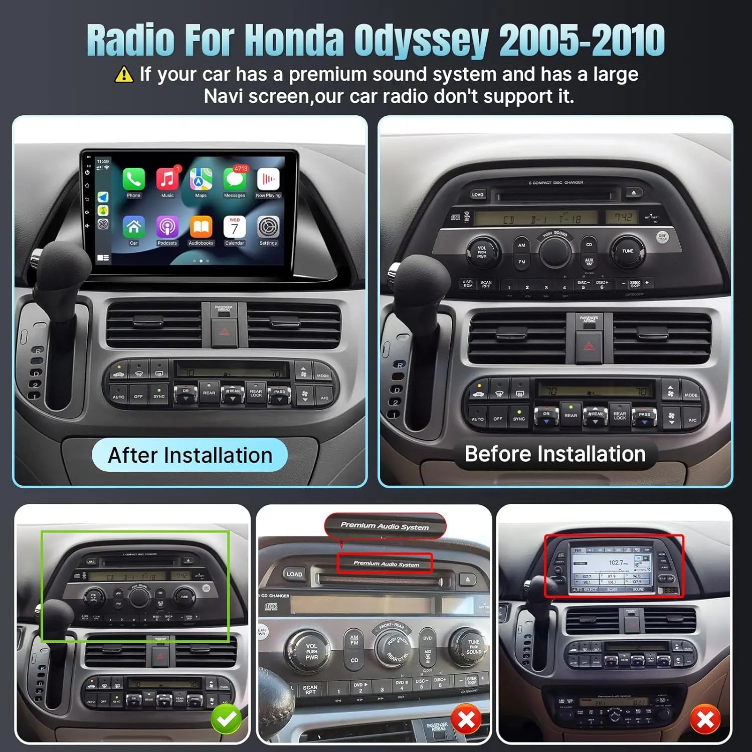 10.1" Wireless Car Stereo for Honda Odyssey 2005-2010 CarPlay Android Auto HD Touchscreen Car Radio with Rear Camera GPS WIFI FM