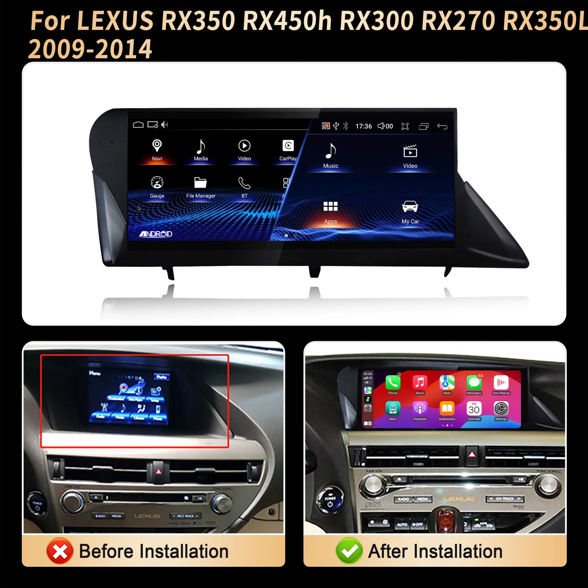 For LEXUS RX350 RX450h RX300 RX270 RX350L 2009-2014 ▶ Specifications: OS: Android 14 CPU: MTK 32G /8581( 8 Core 2.0 GHZ CPU )