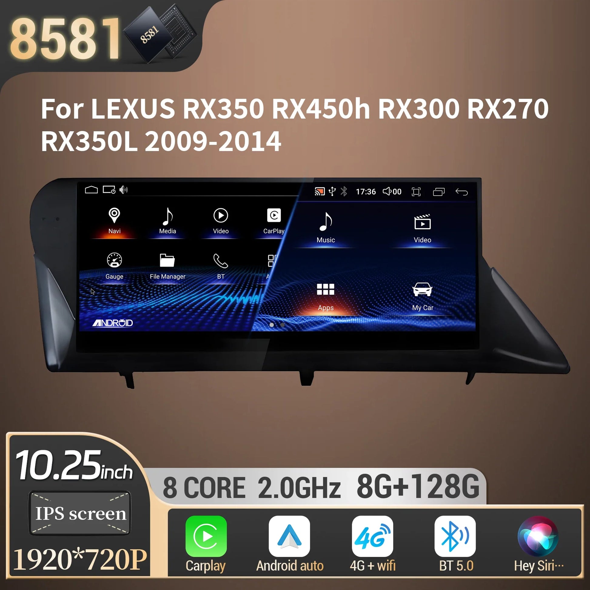 10.25" Android 14 For LEXUS RX350 RX450h RX300 RX270 RX350L 2009-2014 Car Radio Multimedia BT CarPlay Touch Screen