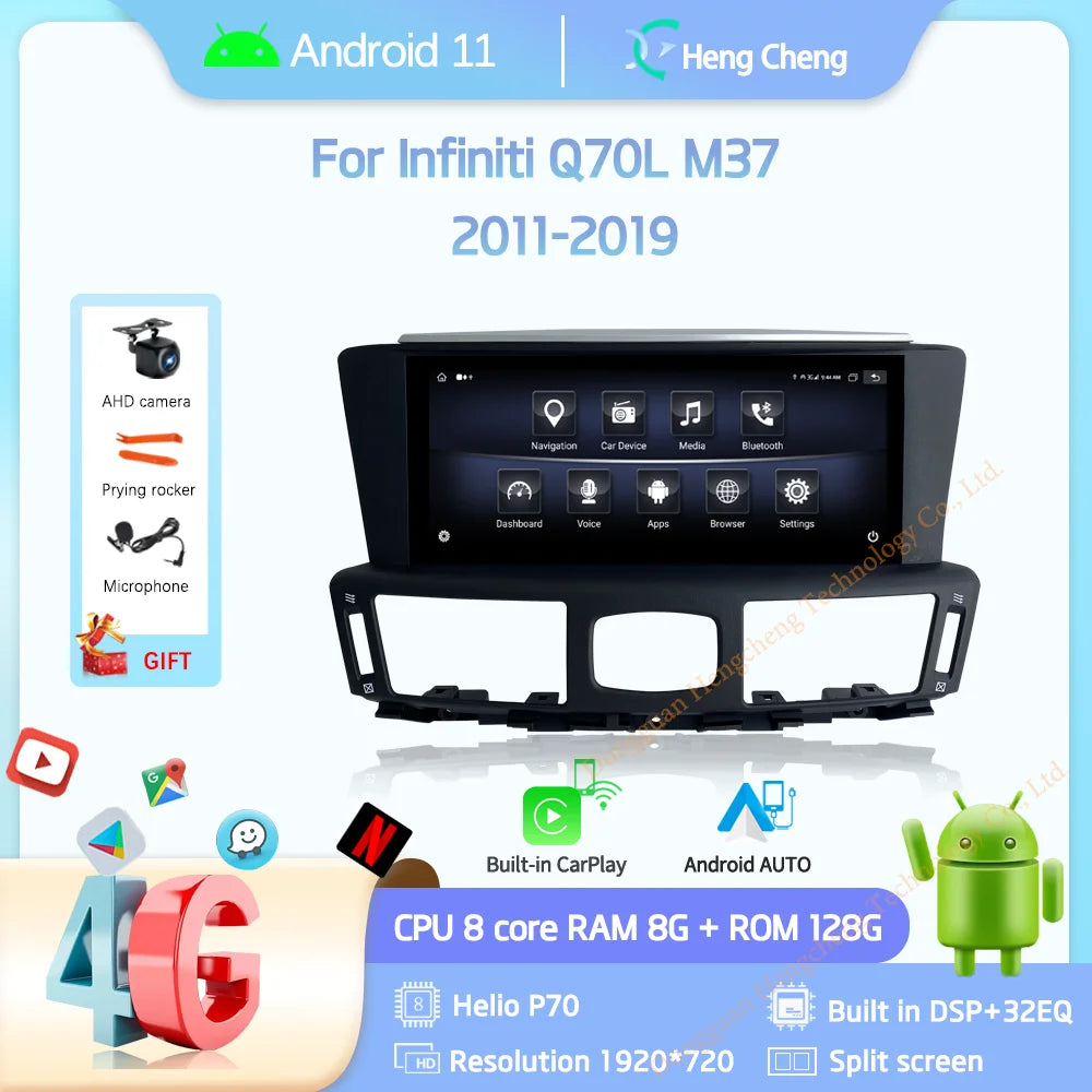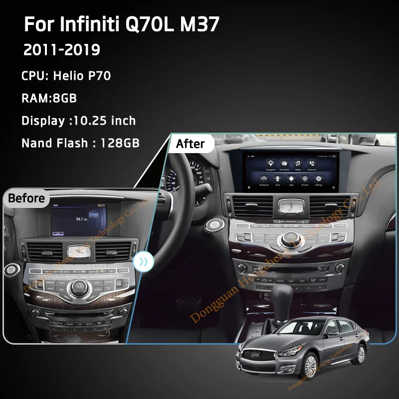 10.25" For Infiniti Q70L M37 2011-2019 GPS Navigation Radio Android11 8+128G 8Core CarPlay 4G 360 Camera Car Multimedia Player