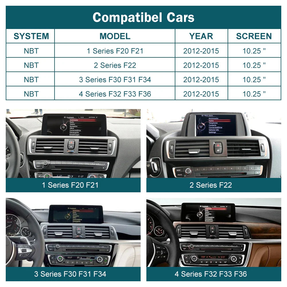 Linux CarPlay Multimedia Screen For BMW 1 2 Series F20 F21 F22 F23 NBT System For BMW 3 4 Series F30/F31 F34 F32 F33 F36 NBT System This kit adds full CarPlay & Android auto functionality to your existing head unit while retaining all the original head unit features