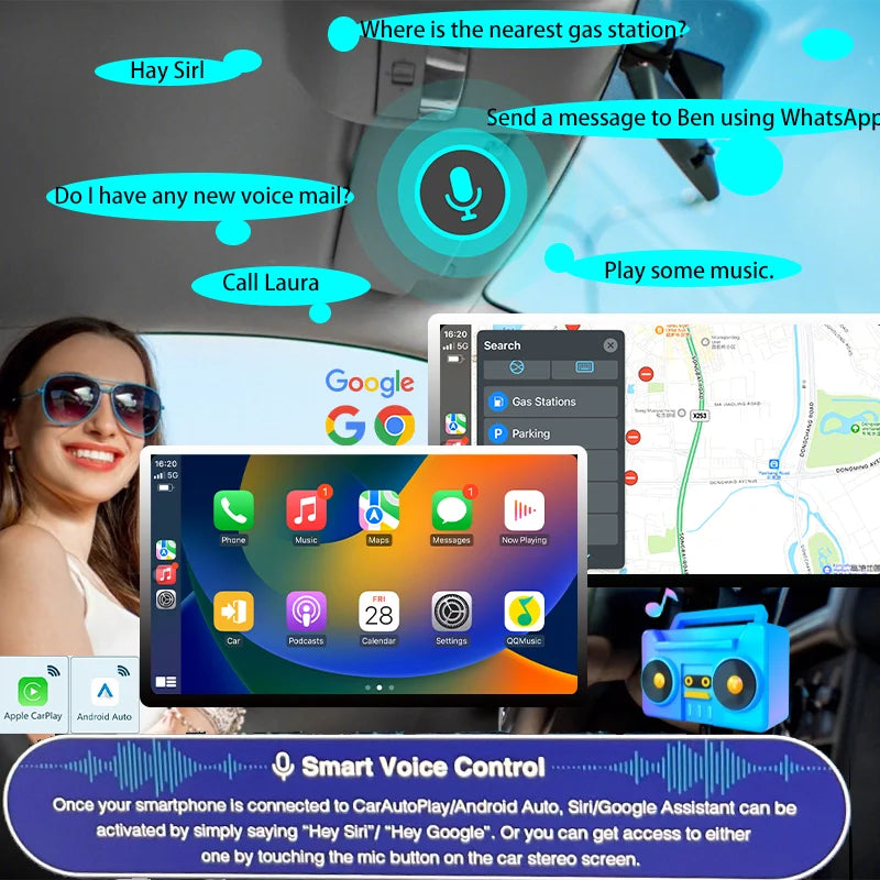 - Stay connected on the go with intuitive voice command and navigation support