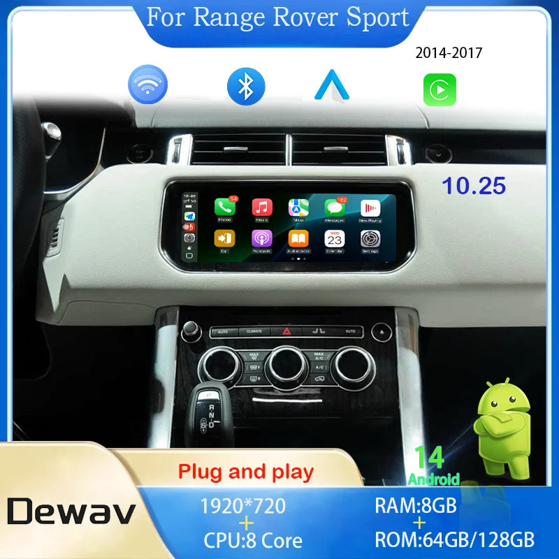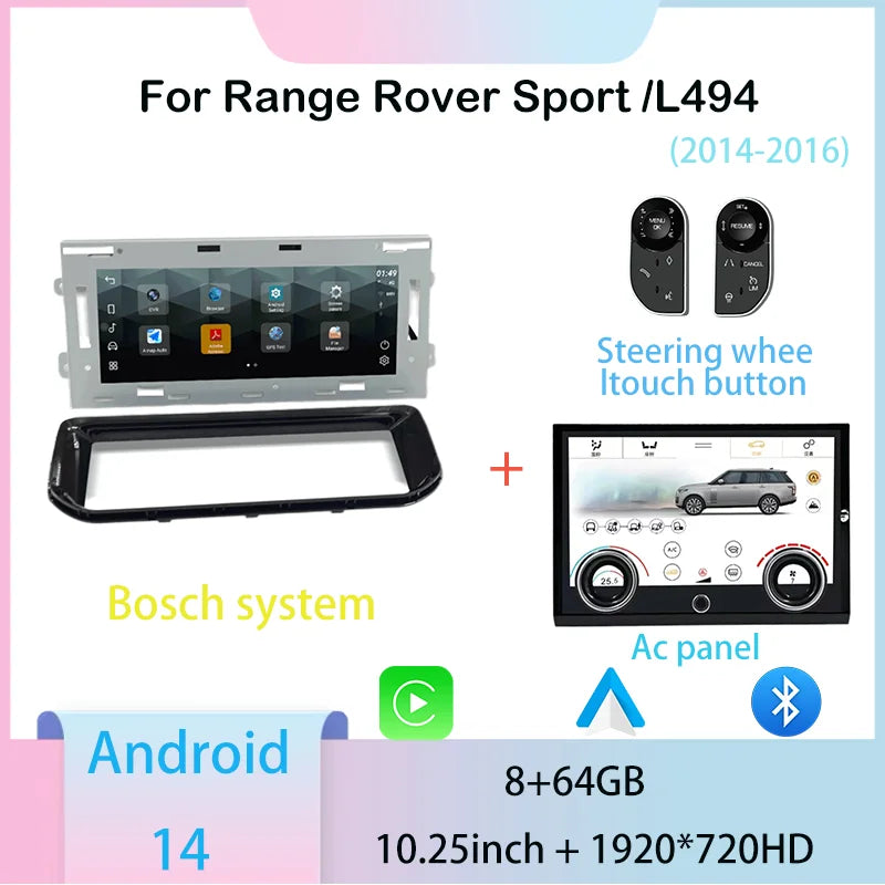 10.25inch Android 14 For Range Rover sport L494 Multimedia Player Radio Carplay auto retains the original feature menu AC Panel