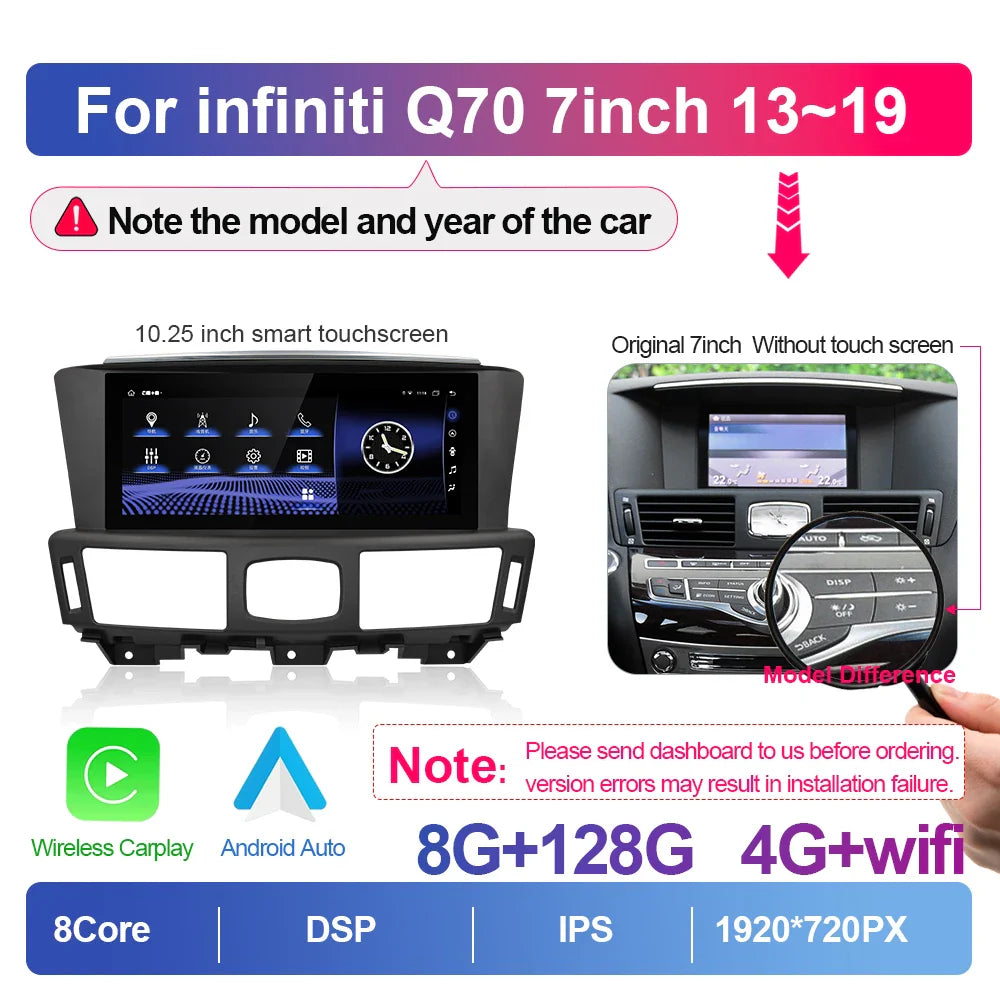 10.25inch Car Radio For Infiniti Q70 Q70L M25 M35 M37 2013-2019 Multimedia Player Wireless Carplay GPS Touch Head Unit Screen