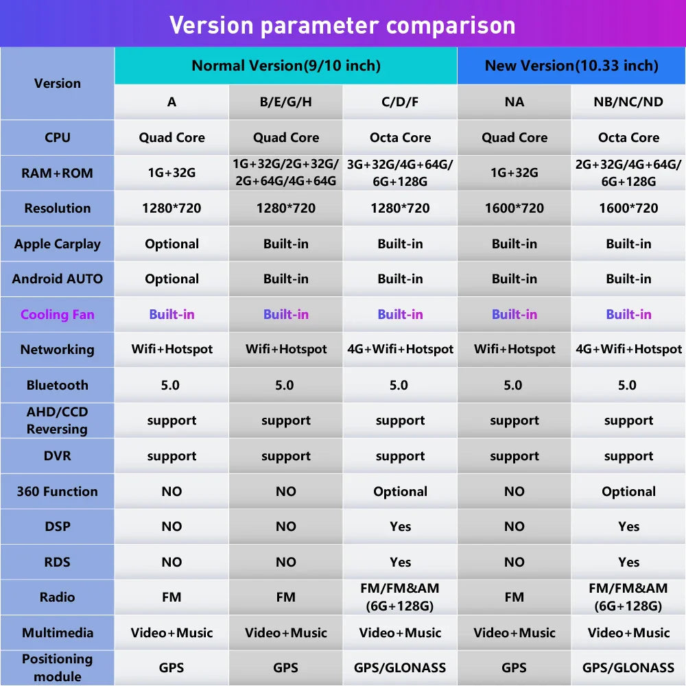 - C/D/F/NB/NC/ND: Octa Core 2GB/3GB/4GB/6GB RAM+32GB/64GB/128GB ROM Version: