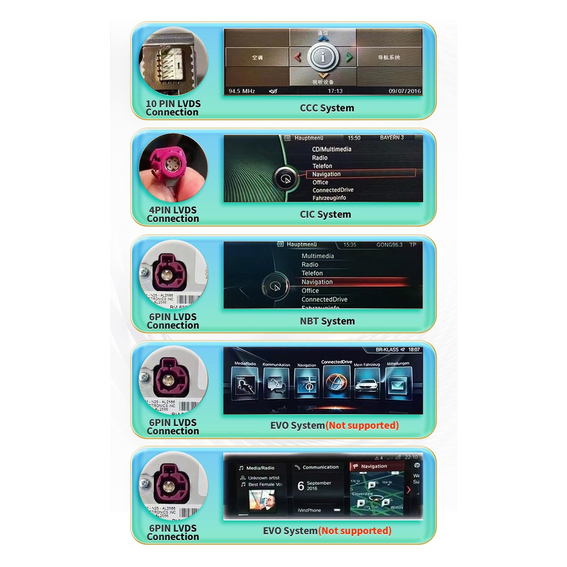 This unit is for NBT system. Please check the picture above to confirm what is your car's connection system.