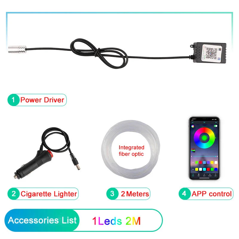 - Create a futuristic ambiance with high-quality fiber optic lights.