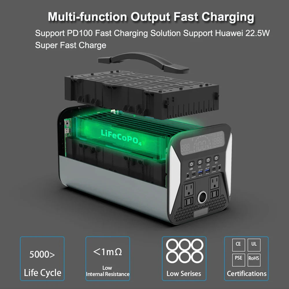 1024Wh Portable Power Station 1000W Solar Generator 320000mAh Lifepo4 Battery 220V Energy Storage Supply Camping Campervan RV