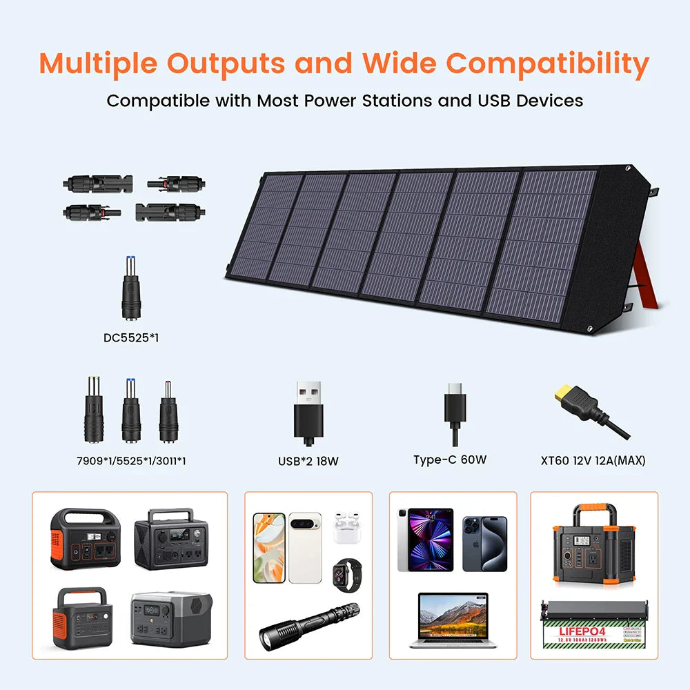 - Effortless charging with solar panels or car adapters.