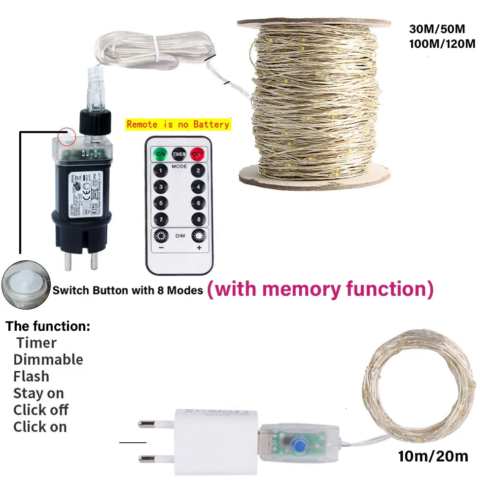 10M-200M LED String Lights Street Fairy Lights Christmas Lights Tree Garland For Outdoor Home Party New Year Wedding Decoration