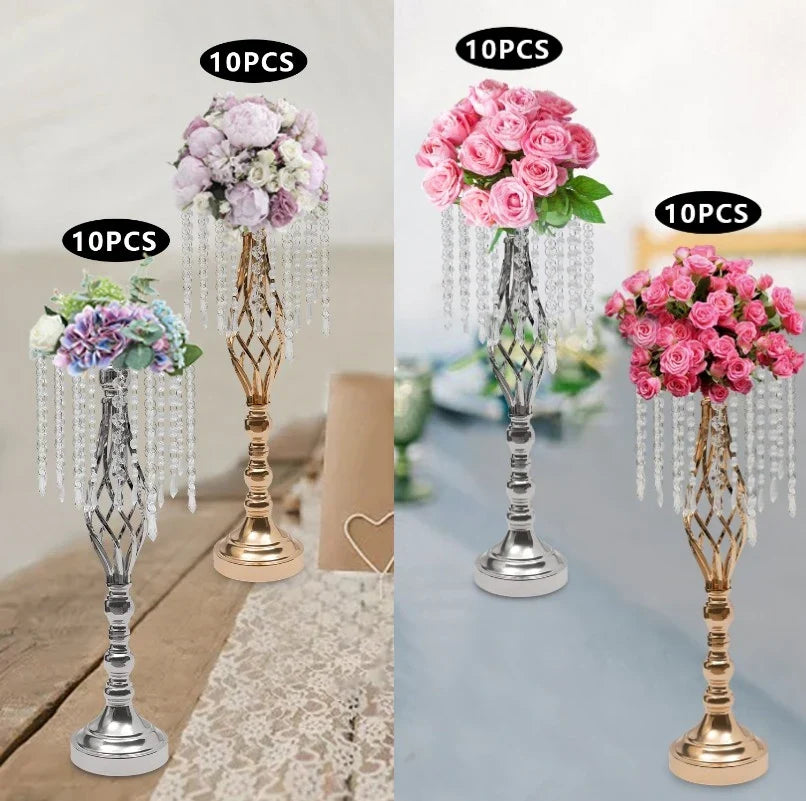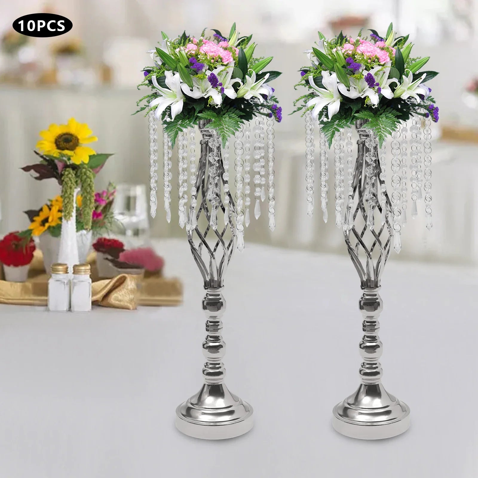 10pcs Crystal Flower Stand Wedding Centerpiece Crystal Metal Flower Vase for Reception Tables Wedding Supplies Gold/Silver