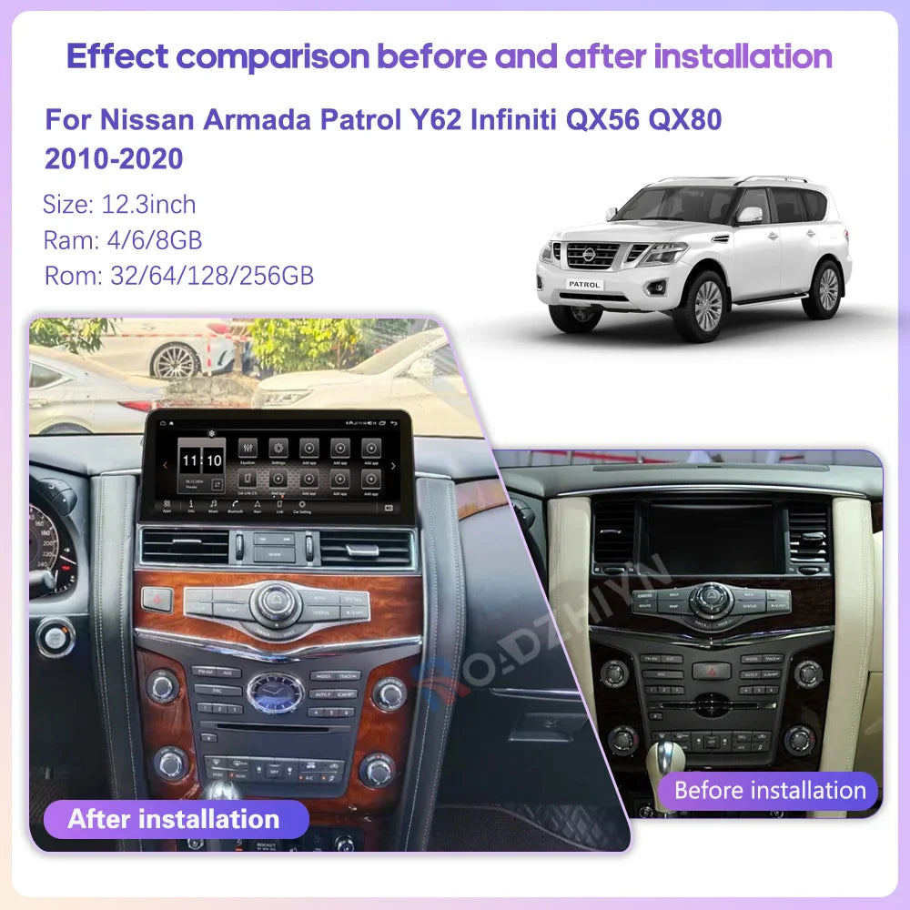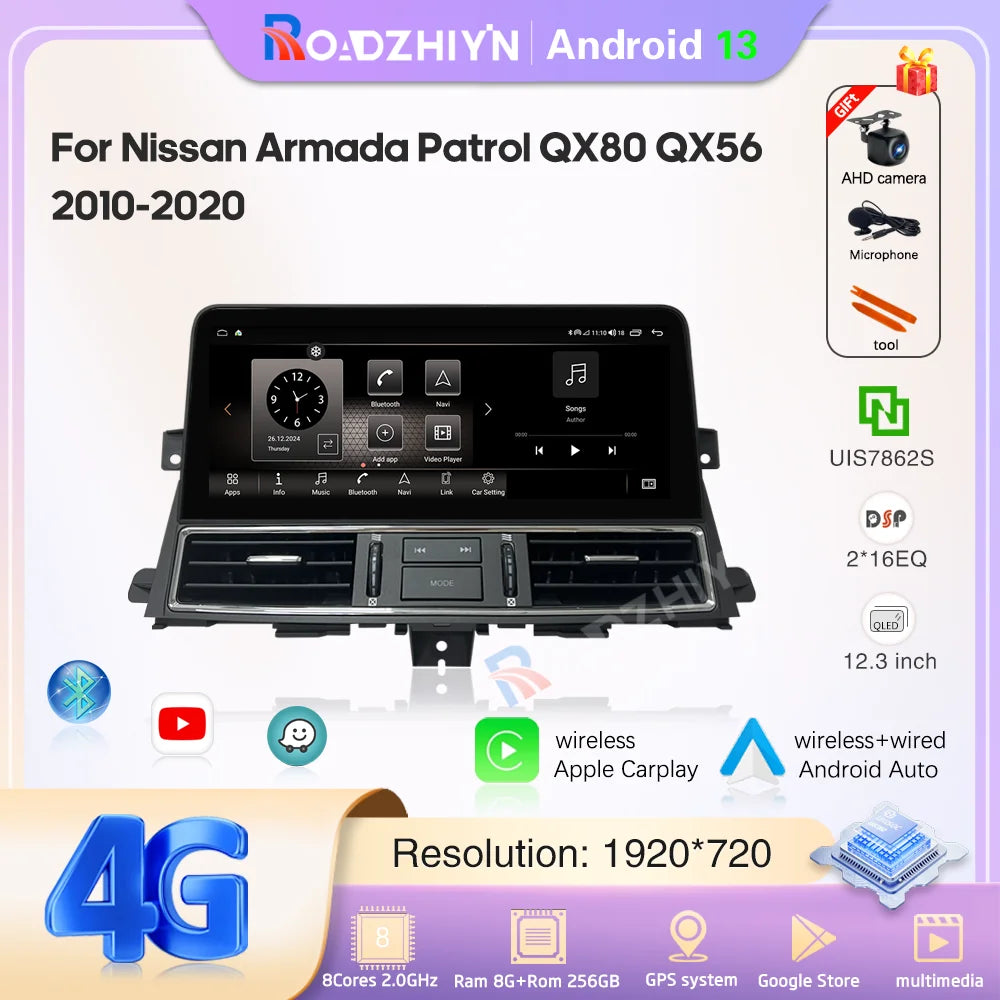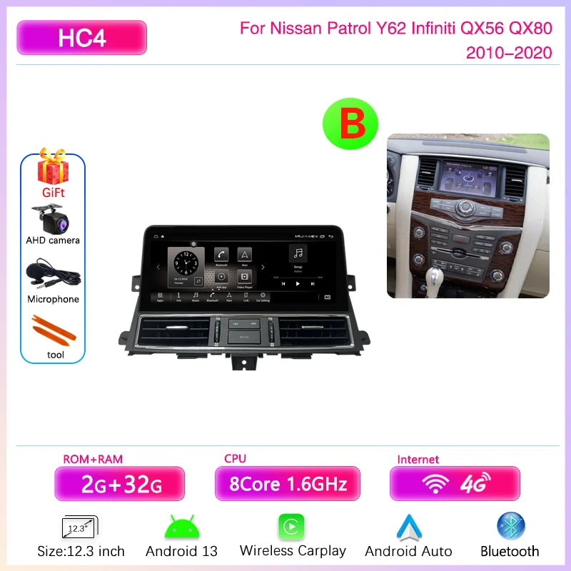 12.3 " Android13 Car Multimedia Video Player For Nissan Patrol Y62 Infiniti QX56 QX80 2010-2020 GPS Navigation CarPlay Auto 4G