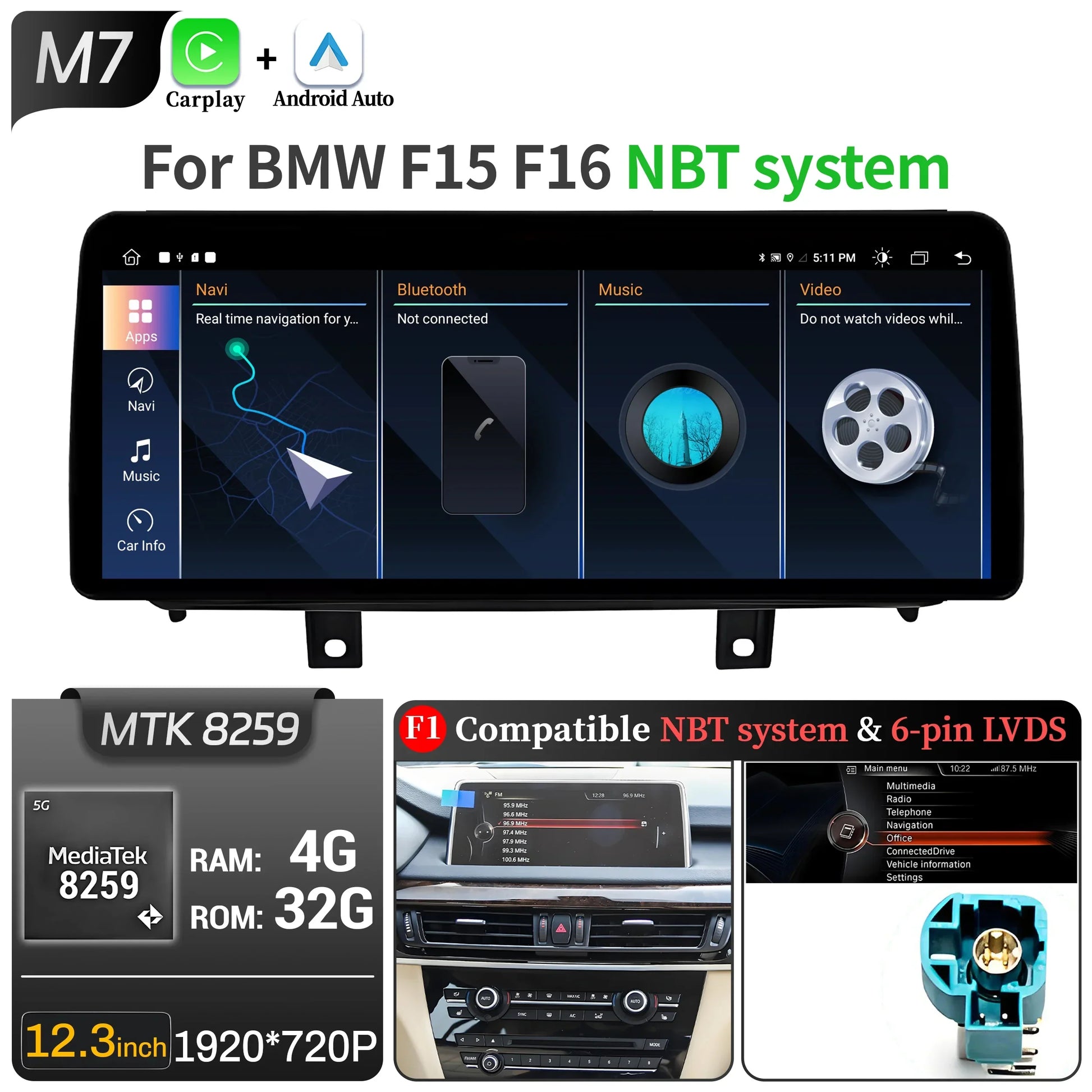 - Supports steering wheel control, comand knob buttons and central touch panel