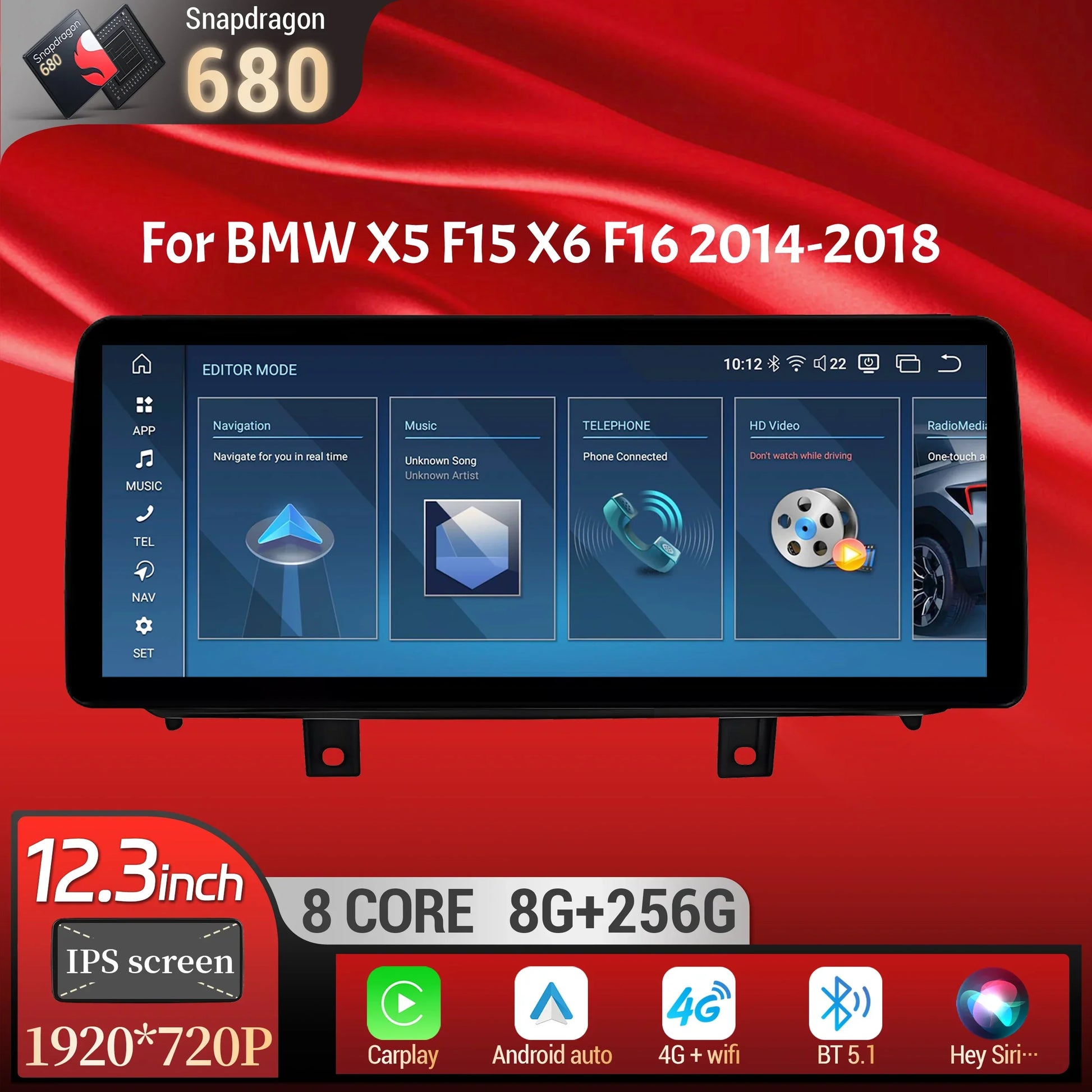 For BMW X5 F15 X6 F16 2014-2018 ▶ Specifications: OS: Android 14 CPU: MTK 8259/Spdragon 668S(SM6125)/Spdragon 680(SM6225)