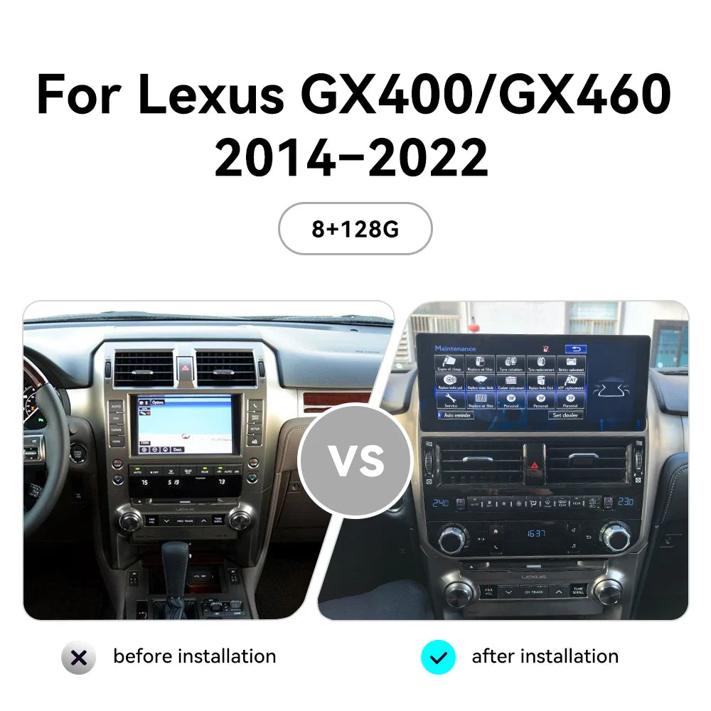 12.5 inches For Lexus GX460 2008-2023 Android 13.0 8G+128GB wireless carplay and Android Auto Main Features: 1.Video format:Support HD 1080P /4K ISP Screen 2.Screen Resolution:High resolution, Capacitive 5 Points Multi-Touch, with Dual Zone function