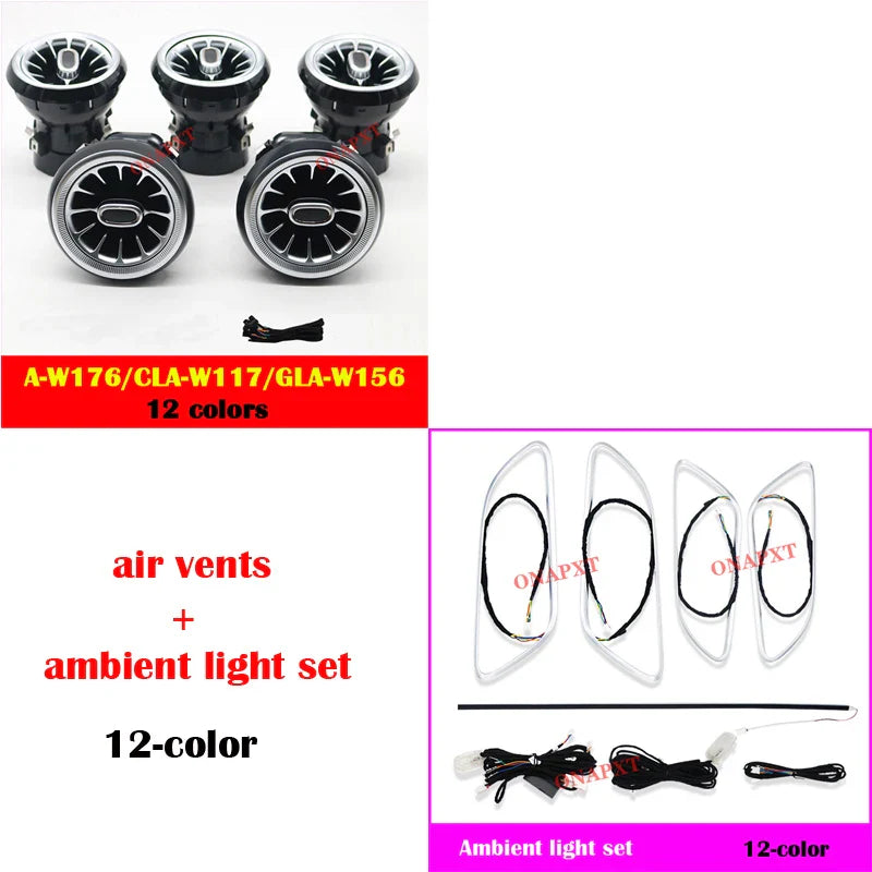 12-color For Benz A/CLA/GLA W176 W117 W156 LED Air Vent Outlet Backlight Nozzle Atmosphere Lamp Door Dashboard Ambient Light